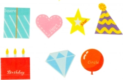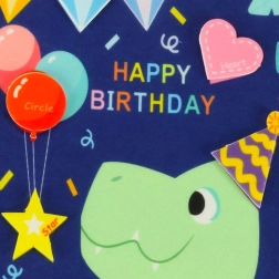 - Strana 3: Motiv rođendanske zabave s dino-tematikom i dekoracije koje se lijepe kao baloni, srce i torta.