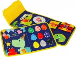 Montessori senzorička ploča u obliku praktične torbe kombinira zabavu i učenje za djecu od tri godine. S motivom dinosaura ne samo da privlači djecu svojim dizajnom, već također pomaže u razvoju fine motorike.