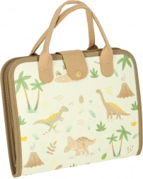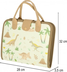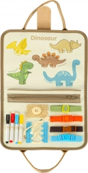 Kovčeg sadrži brisivu ploču i edukativne komponente koje djeci omogućuju razvoj znanja kroz igru. Također su dostupne filcane figure dinosaura za kreativnu igru.