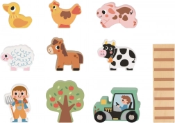 Tooky Toy drvena sklopiva farma donosi vam farmersku avanturu ravno na vaš prag! Sklopiva farma je lako prenosiva i sadrži 11 visokokvalitetnih drvenih elemenata.