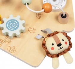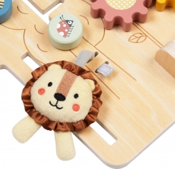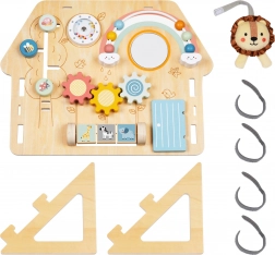 Ova senzorna “busy board” ploča u obliku kućice oduševit će djecu omiljenim elementima za okretanje, pomicanje, klikanje i promatranje. Djeca kroz igru vježbaju hvat, suradnju obje ruke i strpljenje, dok šareni detalji potiču razlikovanje oblika i boja. Izdržljiva drvena izrada i glatki rubovi osiguravaju sigurnu igru svaki dan.