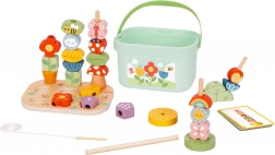 Drveni obrazovni box Magic Garden donosi djeci šarolik svijet listova, cvijeća i simpatičnih kukaca. Potiče finu motoriku, logičko razmišljanje i kreativnost zahvaljujući kombinaciji nizanja, sortiranja i slaganja uzoraka prema kartama aktivnosti. Robusni drveni dijelovi u pastelnim bojama dobro leže u ruci i pozivaju na ponovnu igru.