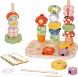 Otkrijte čaroliju učenja kroz igru s drvenim setom Tooky Toy Magic Garden. Ova pametna kutija nudi 5 aktivnosti u 1 – nizanje, sortiranje oblika i boja, slaganje tornjeva prema kartama, uparivanje i praktično spremište. Veliki, glatki dijelovi od sigurnog, ekološkog drva razvijaju finu motoriku, koordinaciju oko–ruka i logičko razmišljanje.