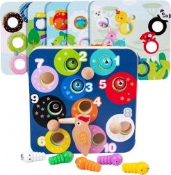 Drvena ptičica s magnetnim kljunom omogućuje lako hvatanje i premještanje crvića. Djeca vježbaju preciznost, hvat i koordinaciju oko–ruka pri svakom “lovu”.