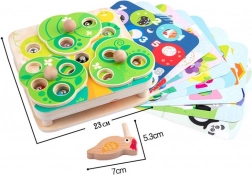 Pametna drvena magnetna igra brenda Tooky Toy spaja zabavu i učenje u jednom. Djeca uz pomoć drvene ptičice love magnetne crviće, okreću listove stabla i ispunjavaju zadatke na izmjenjivim pločama. Igra razvija finu motoriku, koordinaciju oko–ruka, prepoznavanje boja, oblika i brojeva te istovremeno nudi sigurnu drvenu izradu s glatkim rubovima.