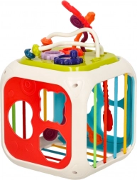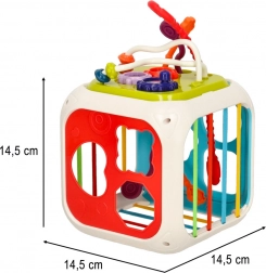 Kocka nudi mnogo aktivnosti koje potiču osjetilni razvoj i koordinaciju očiju i ruku.