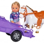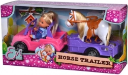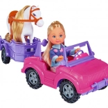 Ovaj set donosi djeci sve za njihove jahaće avanture. Lutkica Evi Love vozi stilski ružičasti kabriolet koji vuče ljubičastu prikolicu za udoban prijevoz konjića. Zahvaljujući okretnim kotačima i odvojivoj prikolici, igra je glatka i zabavna kod kuće i na putu.