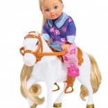 Bijeli konjić s dugom grivom ima sedlo, uzdu i stremene kako bi Evi mogla odmah krenuti na jahanje. Odlično za prizore iz jahaonice i staje.