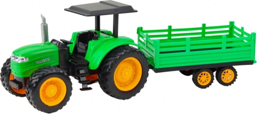 Zeleni daljinski upravljani farmerski traktor s prikolicom idealna je igračka za male ljubitelje poljoprivrede i mehaničkih vozila. Traktor je izrađen od izdržljivih i sigurnih materijala te nudi čvrstu konstrukciju i realističan izgled koji privlači pažnju djece. Zahvaljujući daljinskom upravljanju može se kretati u svim smjerovima, što osigurava dinamičnu i uzbudljivu igru.