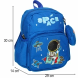 Otkrijte raznolike mogućnosti pohrane s ovim dječjim ruksakom. Glavni veliki pretinac zatvara se patentnim zatvaračem i pruža dovoljno prostora za većinu potreba predškolca. Prednji manji džep savršen je za sitnice ili užinu, dok okrugla vrećica na prednjem dijelu daje ruksaku jedinstven izgled. Sa strane se nalaze džepovi idealni za bocu s vodom ili maramice.