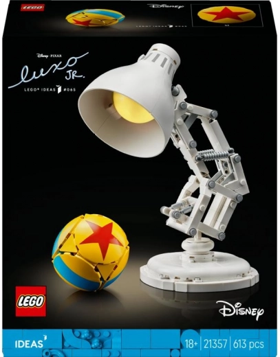 Sastavite stiliziranu lampu LUXO JR., proslavljenu u uvodnoj špici studija DISNEY PIXAR. Model je u potpunosti pokretan – naginjanje sjenila, savijanje ruku i realistične “opruge” omogućuju postavljanje kultnih poza uključujući skok na loptu. U kompletu je i Pixarova lopta koja se otvara i otkriva tematska iznenađenja nadahnuta filmovima kao što su Up, The Incredibles, Ratatouille, Monsters, Inc., Toy Story i Finding Nemo.