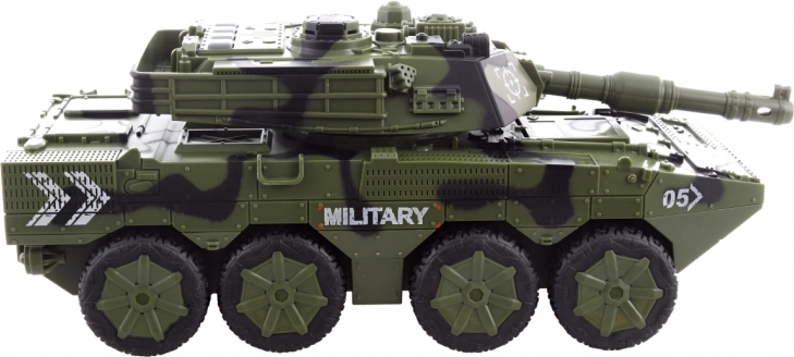 Ovaj interaktivni tenk je idealna igračka za sve male ljubitelje vojne tehnike. Zahvaljujući zamajcu tenk se lako kreće i pruža pravi doživljaj igre.