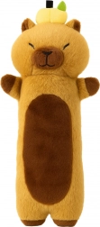 Plišani kapibara ima sladak izraz, zatvorene oči i tipične detalje kapibare, nadopunjene voćnim ukrasom na glavi, koji joj daje razigran izgled. Izrađena od kvalitetnog i mekanog pliša, pruža udobnost tijekom opuštanja i svakodnevnog grljenja. Njezina unutrašnjost je ispunjena elastičnim materijalom koji joj omogućuje zadržavanje oblika.