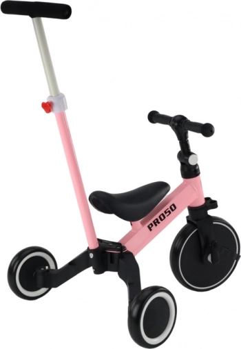 Model PRO50 opremljen je praktičnom drškom za vođenje, koja se lako može ukloniti kada dijete savlada samostalnu vožnju. Konstrukcija omogućuje vožnju s razmaknutim ili spojenim stražnjim kotačima, što povećava stabilnost na početku i omogućuje postupan prijelaz na klasični oblik trokotača.