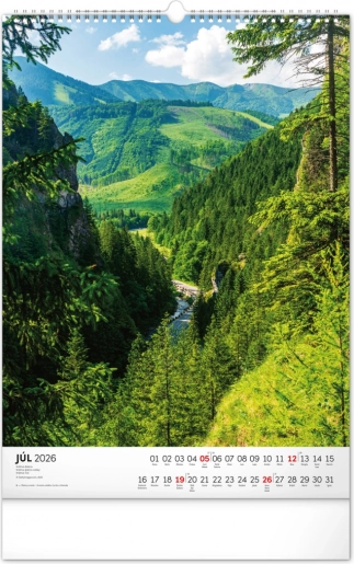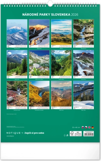 Ovaj kalendar za 2026. donosi najbolje što slovačka priroda nudi. Sadrži dvanaest prelijepih, šarenih fotografija koje predstavljaju raznolikost i jedinstvenost slovačkih nacionalnih parkova. Svaki mjesec pruža pogled na drugi dio ove prekrasne zemlje.
