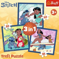 Otkrijte zabavne puzzle 3 u 1 s omiljenim junacima iz LILO & STITCH. Svaka od tri slagalice ima različit broj dijelova, pa dijete može odabrati težinu prema raspoloženju i dobi. Nakon slaganja nastaju tri šarena prizora, od kojih najveći mjeri 200 × 195 mm.