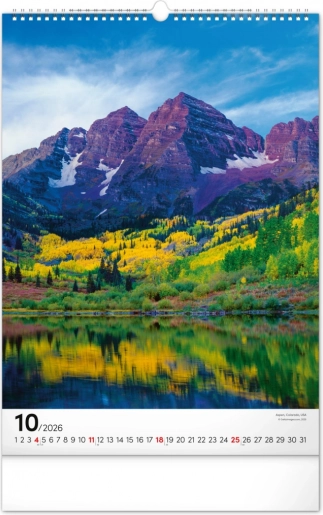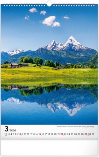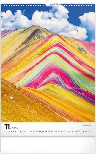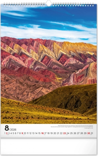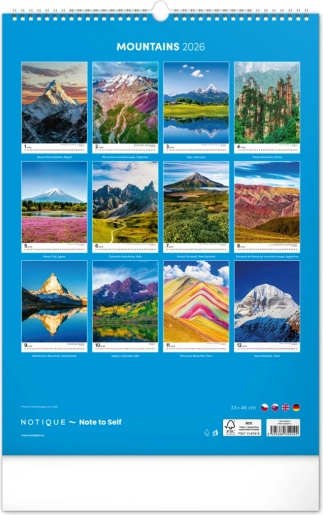 Pronađite svakodnevnu inspiraciju s ovim prekrasnim zidnim kalendarom koji vas vodi kroz pejzaže Novog Zelanda, Islanda, Francuske i SAD-a. Svakog mjeseca oduševit će vas novi pogled na veličanstvene vrhove koji će probuditi vašu strast za putovanjima i unijeti mir u vaš dom ili ured.