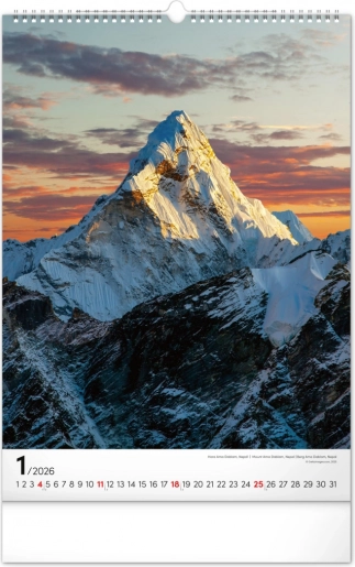 Zidni kalendar Planine 2026 nudi zadivljujuće fotografije kultnih planina iz cijelog svijeta, idealno za ljubitelje prirode i avantura.