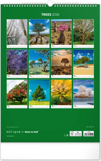 Otkrijte ljepotu i veličanstvenost stabala iz različitih krajeva svijeta s našim Notique zidnim kalendarom Drveće 2026. Ovaj kalendar nudi: