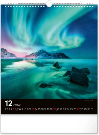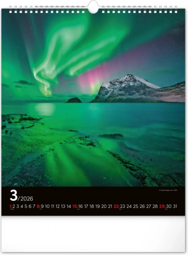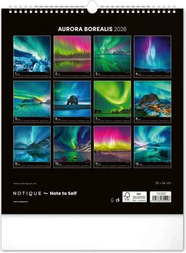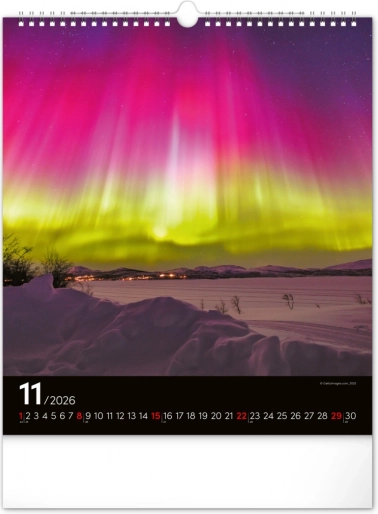 Oživite svoje snove i ukrasite svoj prostor prekrasnim slikama polarne svjetlosti s našim zidnim kalendarom za 2026. godinu:
