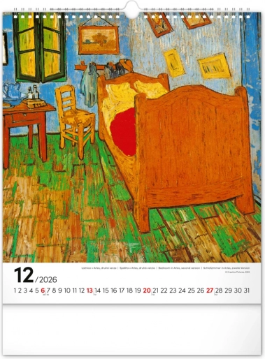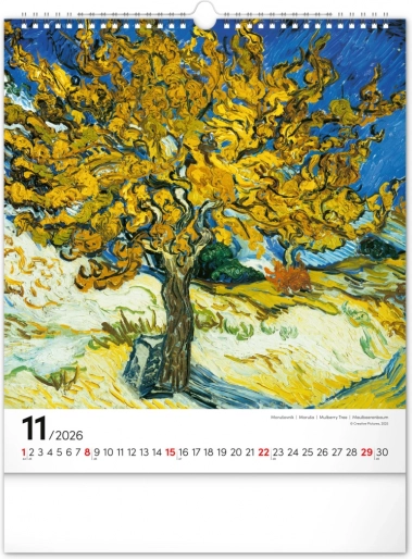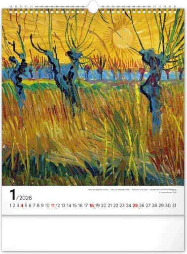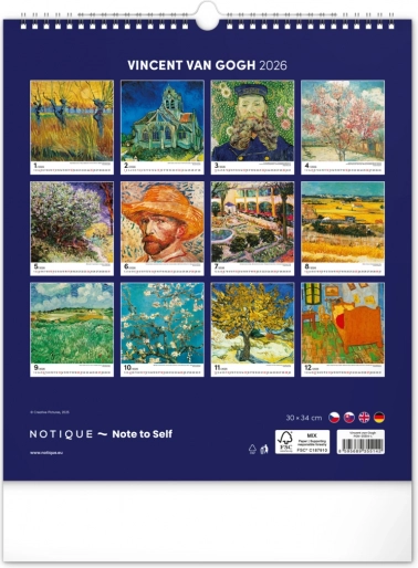 Ovaj prekrasan zidni kalendar za 2026. godinu donosi najpoznatija djela Vincenta van Gogha. Savršen je dodatak za vaš dom ili ured i nudi očaravajući pogled na van Goghovu umjetnost tijekom cijele godine:
