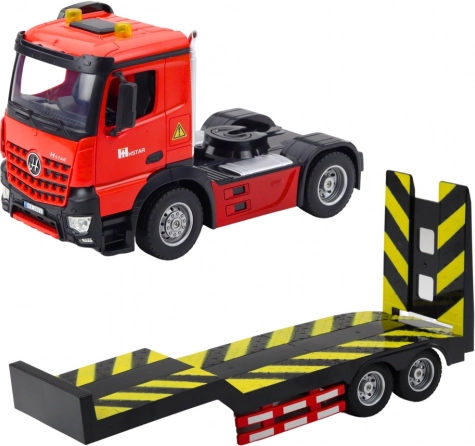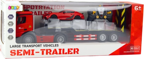 Set sadrži kamion s prikolicom i sportski autić u živoj crvenoj boji. Pomoću daljinskog upravljanja možete voziti teški kamion u svim smjerovima te jednostavno utovariti i istovariti sportski auto. Sportski auto također je na daljinsko upravljanje, što pruža uzbudljivu vožnju po podovima, tepisima ili trkaćim stazama.