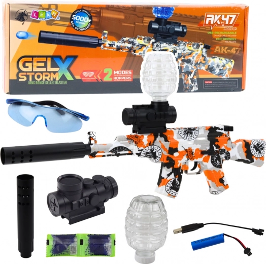 Ova karabina je opremljena sa izmjenjivim spremnicima za gel kuglice i optičkim nišanskim uređajem, što osigurava uzbudljivu igru na svježem zraku ili kod kuće (s odgovarajućim sigurnosnim aranžmanima). Zahvaljujući napajanju iz akumulatora 3.7V Li igračka nudi udobno korištenje bez potrebe za čestim mijenjanjem baterija.