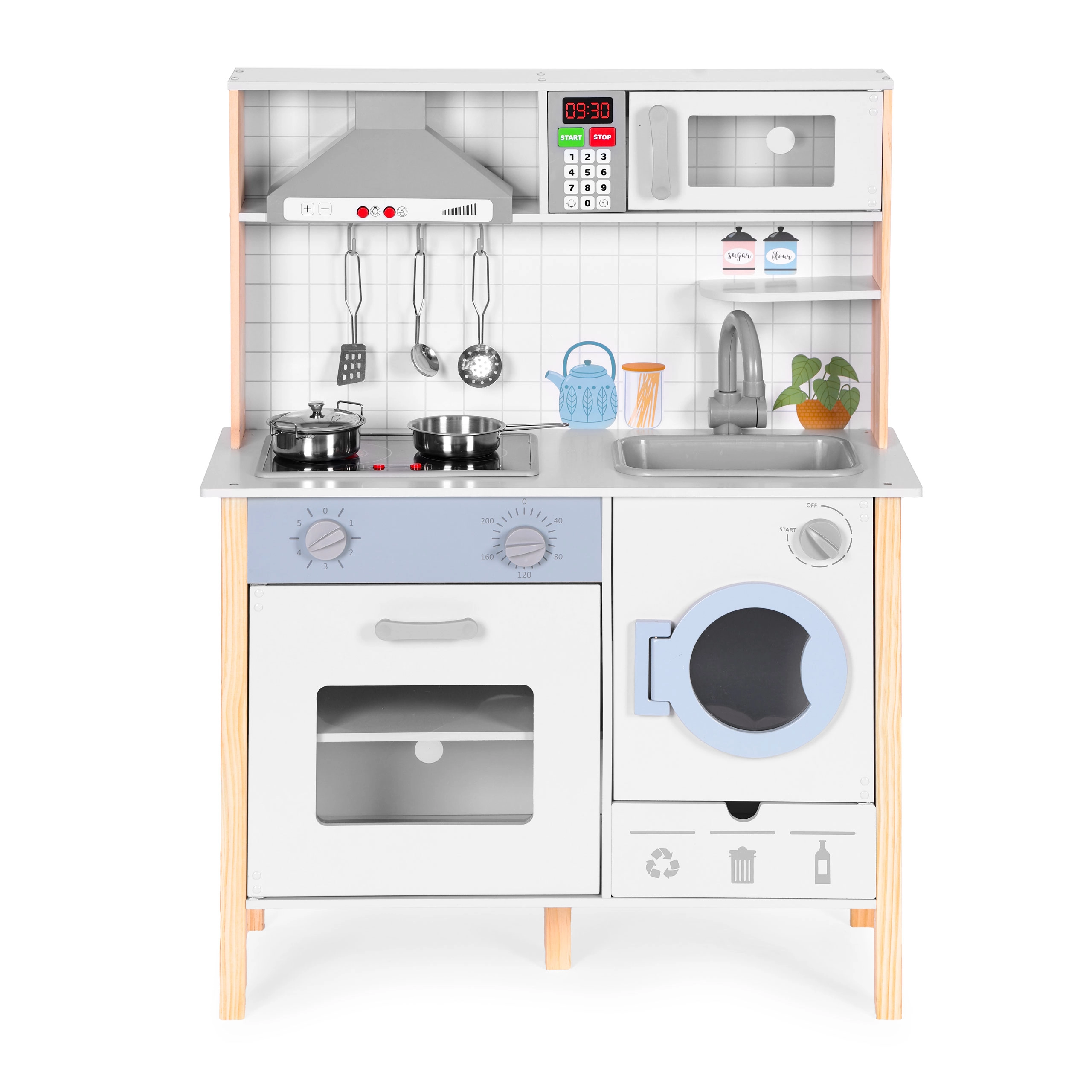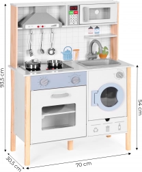 Uživajte u satima zabave s dječjom drvenom kuhinjicom ECOTOYS. Ova kuhinjica ima realistične uređaje, klikajuće gumbe, LED osvjetljenje i zvukove kuhanja koji svaku igru pretvaraju u doživljaj.