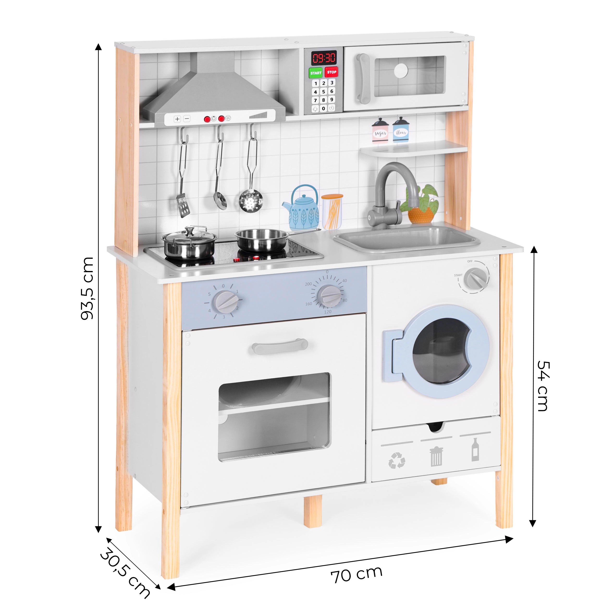 Otkrijte čaroliju kuhanja s velikom drvenom kuhinjicom brenda ECOTOYS. Ova kuhinjica ne samo da potiče kreativnost i manuelne vještine, već djeci omogućuje učiti osnove kuhanja i pripreme jela na zabavan i siguran način. Idealna je za igru samostalno ili s prijateljima, što doprinosi razvoju socijalnih vještina.