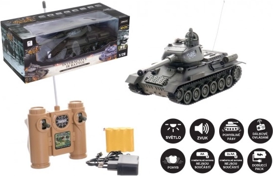 RC tenk plast 33 cm T-34/85 na baterije + punjivi paket 27 MHz sa zvukom i svjetlom u kutiji 40x15x19 cm