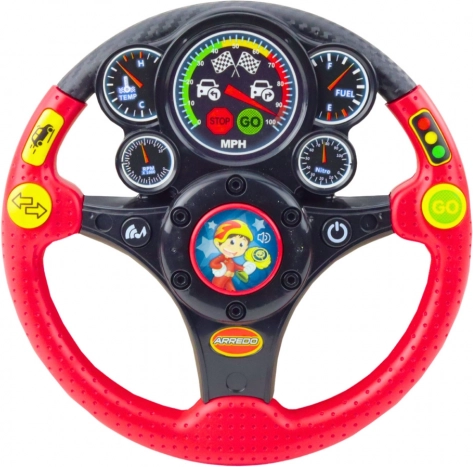 Zahvaljujući funkciji imitacije zvukova trube, pokazivača smjera ili vožnje te pozadinskom osvjetljenju instrumenata, dijete ima mogućnost interaktivne i realistične igre. Volan sadrži 7 funkcijskih tipki, od kojih svaka aktivira različite efekte – od zvukova motora, preko svjetala, do melodija i vibracija. Tipka ON/OFF u obliku paljenja omogućuje djetetu započeti igru kao u pravom automobilu. Osvjetljenje instrumenata i realistične vibracije pojačavaju dojam prisutnosti u kabini automobila. Igračka odlično potiče razvoj osjetila, koordinaciju pokreta i vida te maštu.