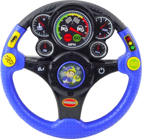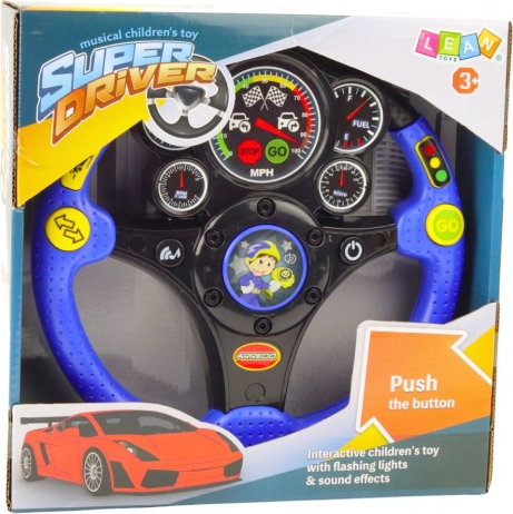 Interaktivni volan za djecu sadrži 7 funkcijskih tipki, od kojih svaka pokreće različite efekte – od zvukova motora, preko svjetala pa sve do melodija i vibracija. Tipka ON/OFF u obliku ključa omogućuje djetetu da se igra kao u pravom automobilu. Pozadinsko osvjetljenje imitacije mjerača i realistične vibracije pojačavaju dojam prisutnosti u kabini automobila.