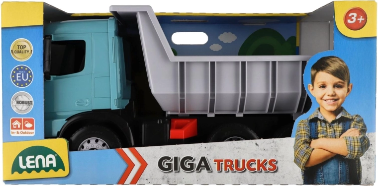 Ovaj robustan kiper iz serije Giga Trucks stvoren je za male graditelje. Zahvaljujući velikoj kiperskoj klupi s blokadom, bez poteškoća prevozi i veće terete te ih sigurno istovaruje. Realistični detalji kabine AROCS potiču kreativnu i tematsku igru na gradilištu, u vrtu ili dječjoj sobi.