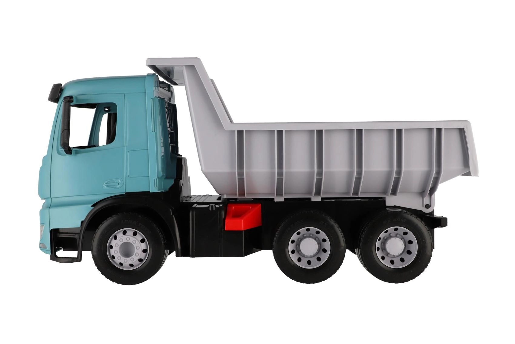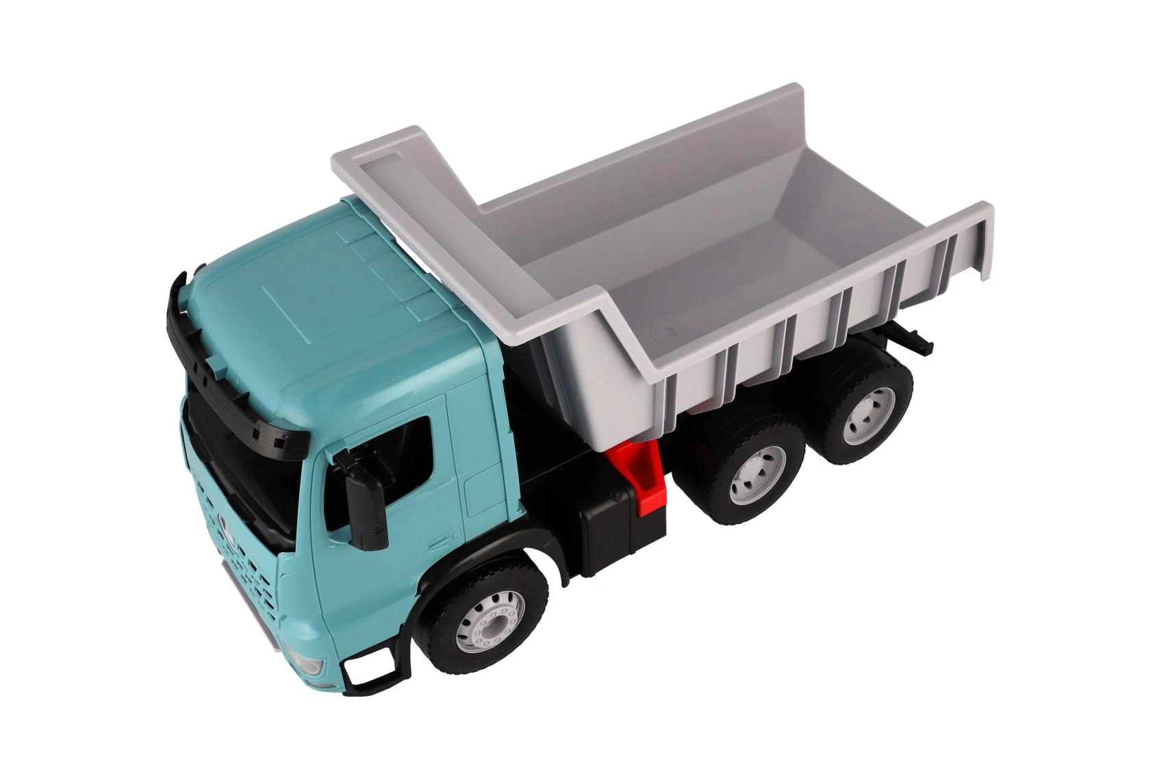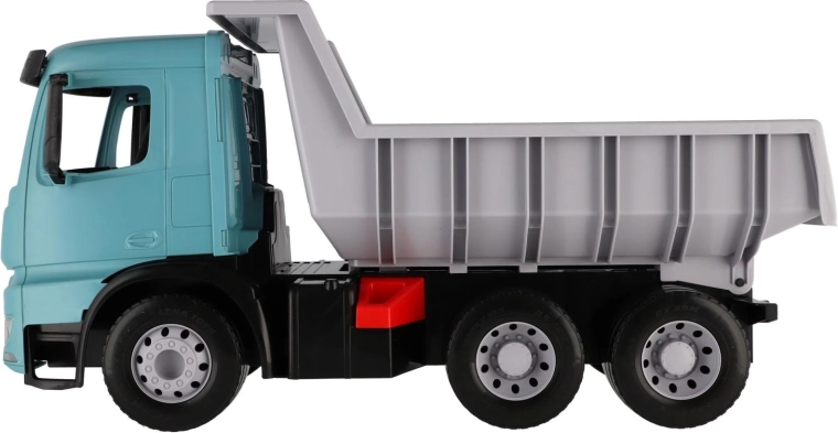 Veliki plastični kiper za djecu od 3 godine s realističnim izgledom vozila MERCEDES-BENZ AROCS. Nudi prostranu kipersku klupu s praktičnom blokadom protiv neželjenog istovara, izdržljivu konstrukciju od kvalitetne plastike i moderno tirkizno-sivo izvedenje. Idealan za igru kod kuće i na otvorenom, za prijevoz pijeska, igračaka i mašte.