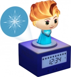 Svjetleći stolni budilica s likom princeze Else iz filma Frozen. Uključuje USB kabel za napajanje i projekciju na zid za lakše uspavljivanje.