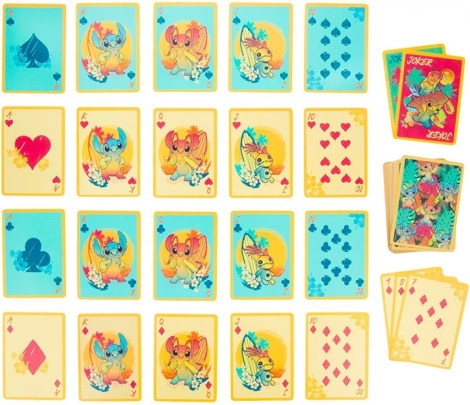 Vodootporne igraće karte Stitch, idealne za igre na plaži ili uz bazen. Pakiranje sadrži 54 karte uključujući džokere.