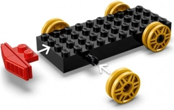 Trkaći autić s velikim kotačima i mjestom za raketu straga dodaje brzinu, vratolomije i puno mašte u igru.