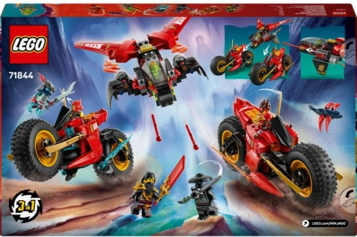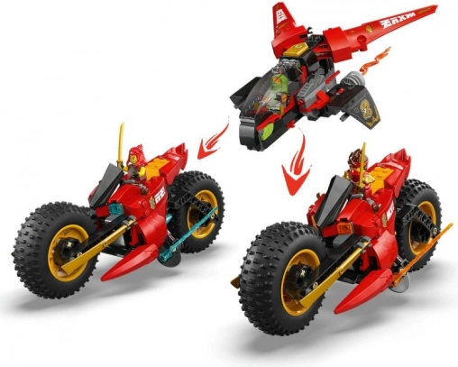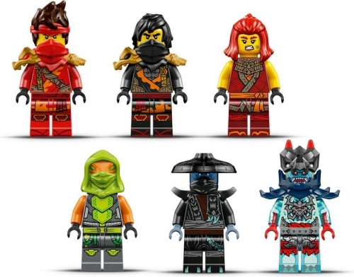 Ovaj detaljan set donosi uzbudljivu akciju na zemlji i u zraku. Glavno borbeno vozilo nindža 3 u 1 lako se dijeli na tri zasebne strojeve: okretni Kaiov motor, vatreni Wyldfyrein motor i aerodinamični Frakov mlažnjak s dvama strjelcima za dinamičnu igru. Sastavljanje i preuređivanje je intuitivno i zabavno.