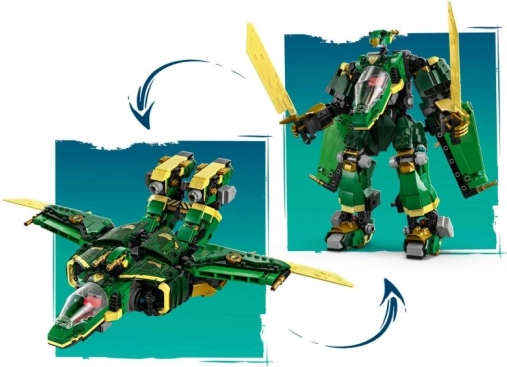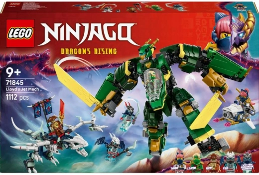 Uđite u svijet NINJAGA s moćnim Lloydovim robotom koji se u trenu pretvara u elegantni mlazni avion. Zahvaljujući artikulacijskim zglobovima robota lako ćete namjestiti u akcijske poze, dok preradiva konstrukcija donosi dva načina igre u jednom setu. U kompletu je i 5 minifigura – SORA i LLOYD s ninja opremom protiv trojice zlikovaca KUR, TYR i ratnika Spektralnih zmajeva sa skrivenom zastavom, koju otkrivate samo prozirnom Oštricom Objave.