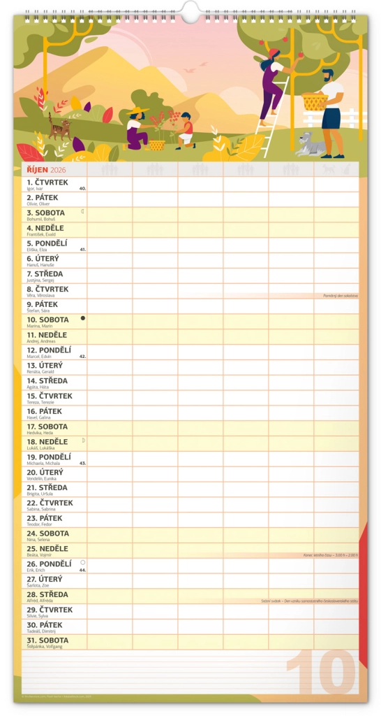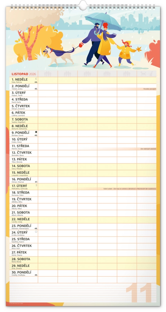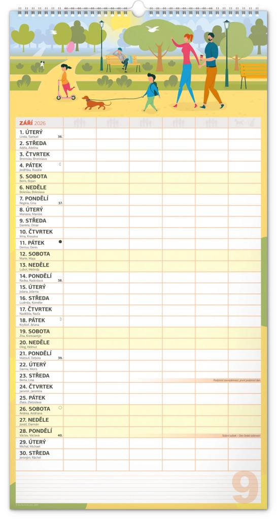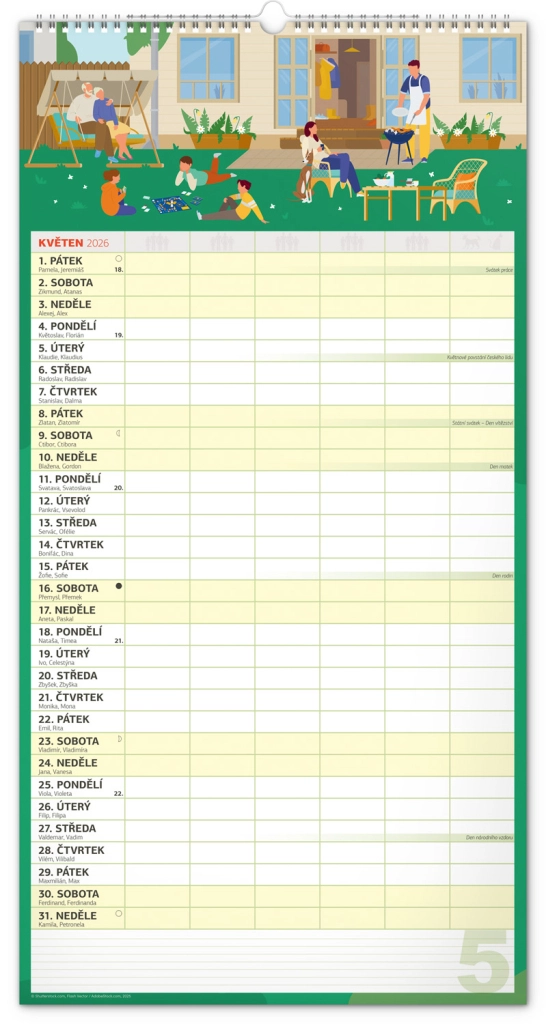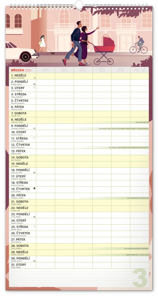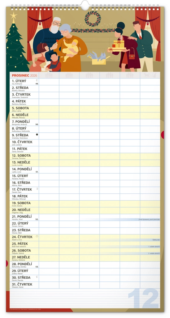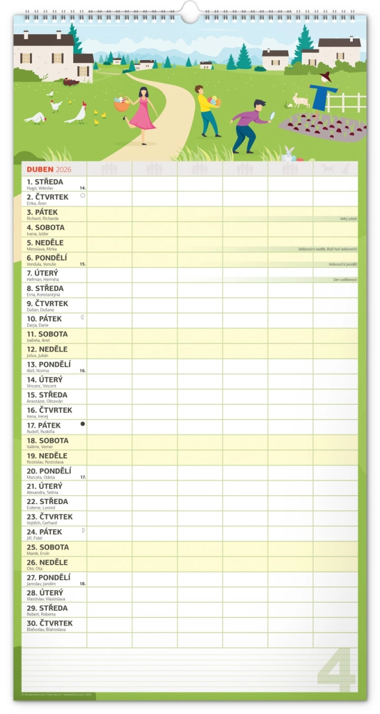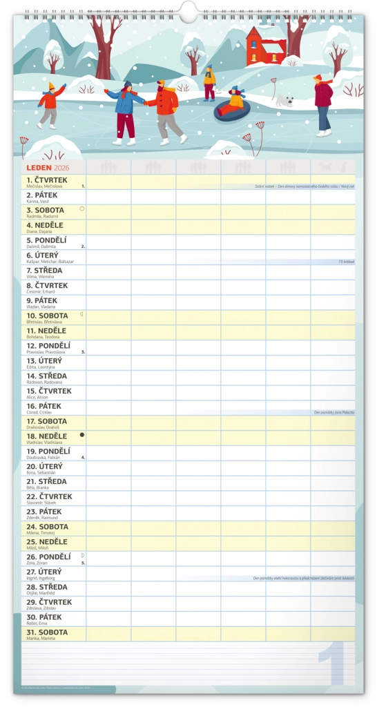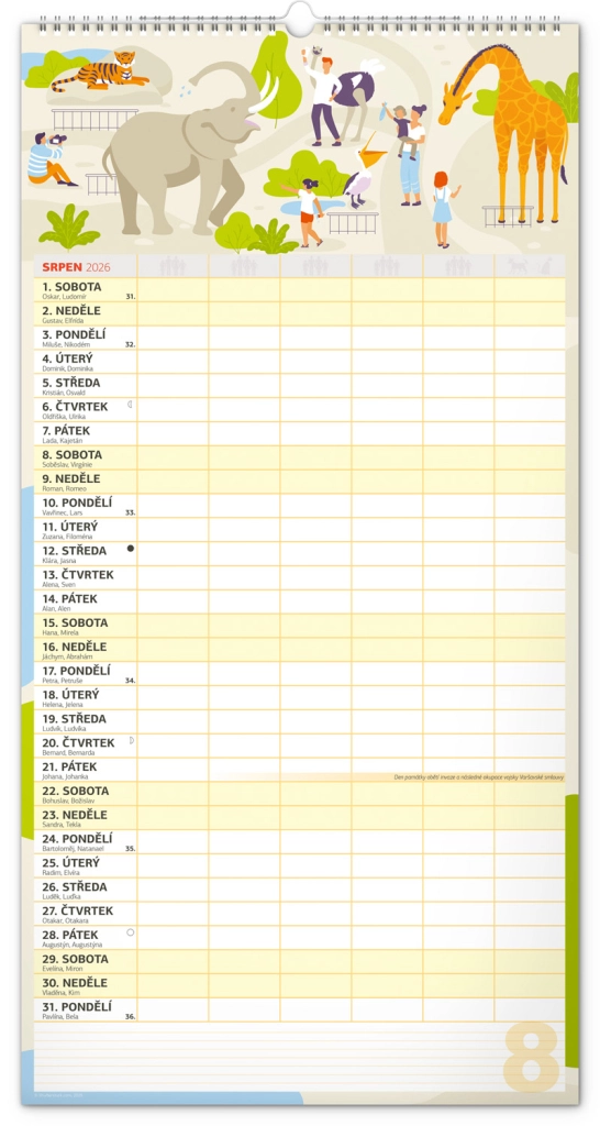 Ovaj kalendar velikog formata dimenzija 33 x 64 cm pruža dovoljno prostora za vaše bilješke i planiranje aktivnosti. Elegantna i vedra grafika dodaje estetsku vrijednost te bojama razlikuje pojedine dijelove godine, što olakšava snalaženje.