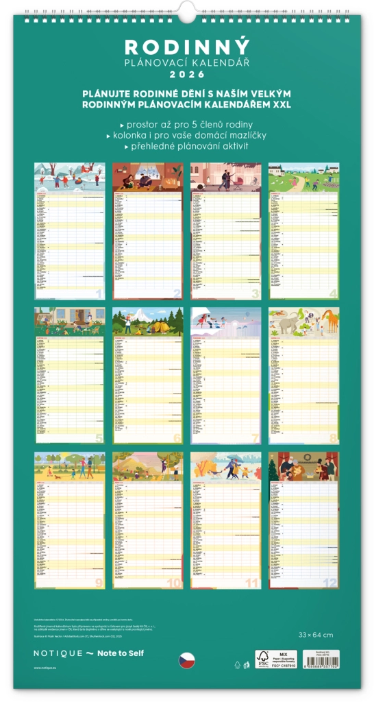 Ovaj zidni planer kalendar XXL za 2026. idealan je za velike obitelji. Zahvaljujući hrvatskom kalendariju i planeru aktivnosti za šest članova kućanstva ostat ćete organizirani i ništa vam neće promaknuti.