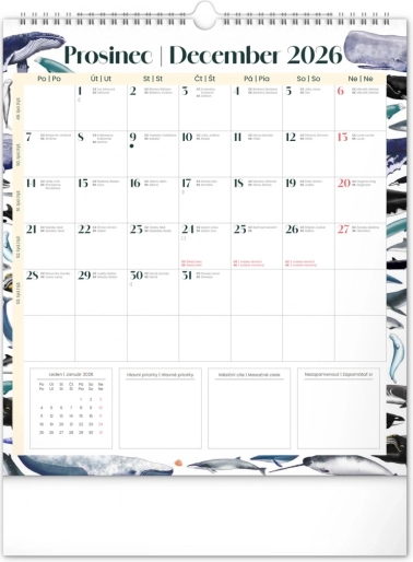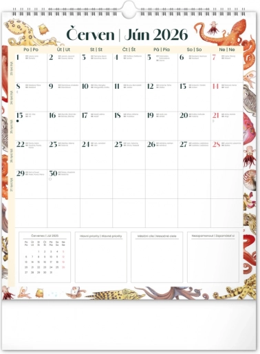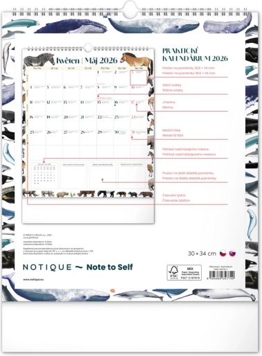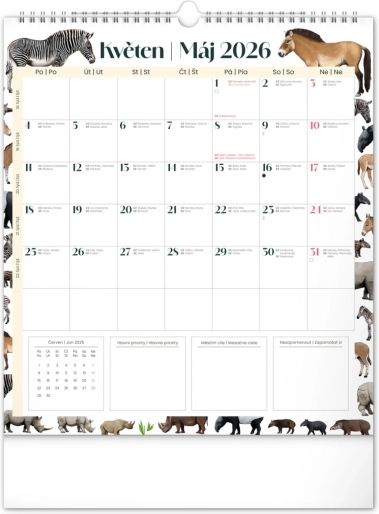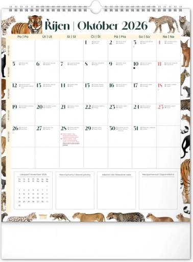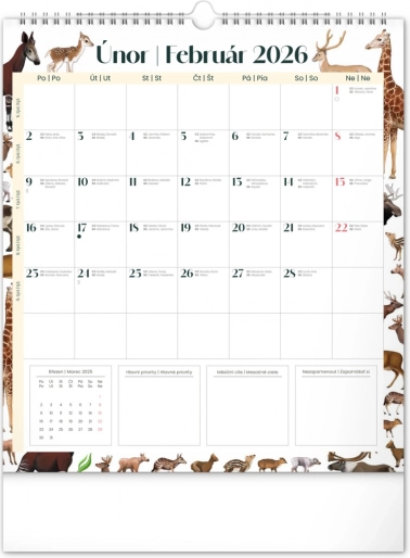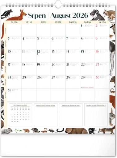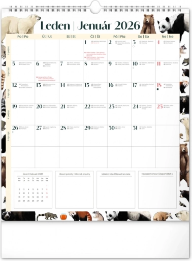 Uljepšajte svoje zidove kalendarom Animalium za 2026., koji nudi hrvatsko i slovačko kalendarij te prekrasne ilustracije životinja. Sadrži državne blagdane i mjesečeve mijene, što olakšava planiranje vašeg vremena.