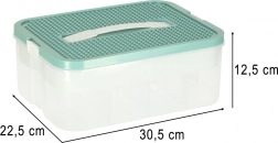 Praktičan organizator za igračke, sitnice ili konstrukcijske setove s poklopcem i prilagodljivim pregradama. Odličan pomoćnik za održavanje reda u domu.