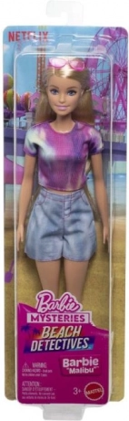 Lutka Barbie „Malibu“ donosi svjež ljetni stil i mnoštvo mogućnosti za igru. Zahvaljujući batikiranom crop topu, traper kratkim hlačama i stilskim naočalama spremna je za svaki izazov – od plažne potrage do gradskih avantura. Potpuno pokretni udovi omogućuju prirodne poze i zabavne scene.