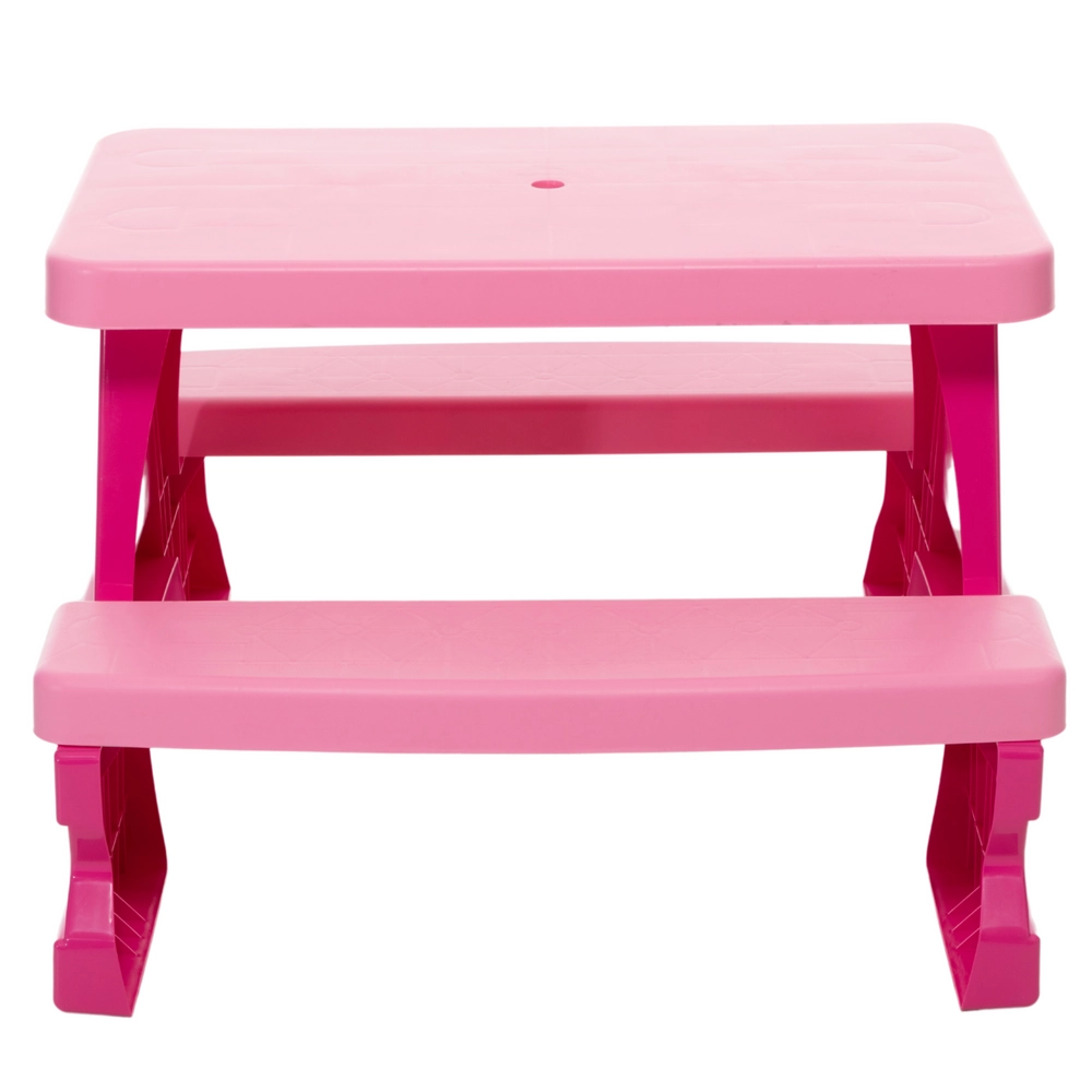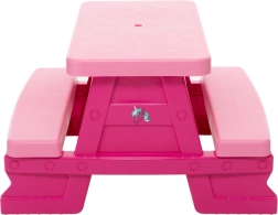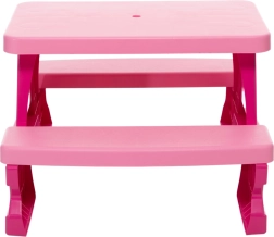Ovaj dječji piknik-stol izrađen je od izražajne ružičaste plastike koja ne samo da izgleda moderno, već i lako privlači pažnju djece.