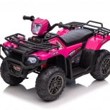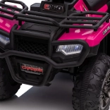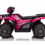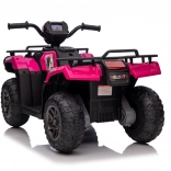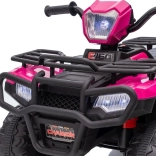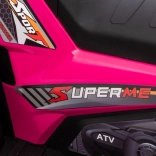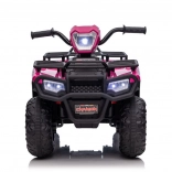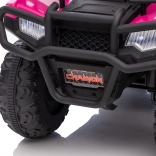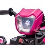 Ovaj ružičasti električni dječji četverocikl imitira pravi ATV stil – ima izraženu masku, funkcionalna svjetla i četiri terenska kotača za bolju stabilnost. Dizajniran je za jednostavno upravljanje, potiče koordinaciju i samopouzdanje pri prvim vožnjama.