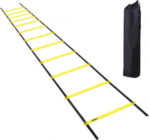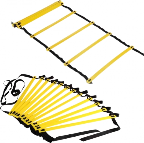 Trening ljestve izrađene su od izdržljivog PVC-a i polietilenskih traka, što ih čini otpornima na intenzivnu upotrebu, kako u dvoranama, tako i na otvorenom. Ljestve imaju 12 podesivih prečki koje omogućuju prilagodbu razmaka specifičnim vježbama i razini korisnika.