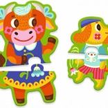 DJECO Puzzle Veliki i Mali na Farmi je zabavna i edukativna igračka za najmlađe. Paket sadrži osam dvodijelnih figura koje predstavljaju domaće životinje, koje djeca lako spajaju zahvaljujući velikim dijelovima.