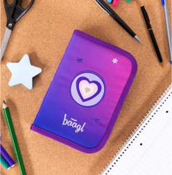 Za kompletnu opremu školarca tu je i jednokatna pernica s dvije preklopne stranice i markiranim YKK patentnim zatvaračem. Nudi prostrano otvaranje s džepićićem za sitnice i prozorčićem za raspored sati. Gumice unutra idealne su i za trokutaste bojice i flomastere.