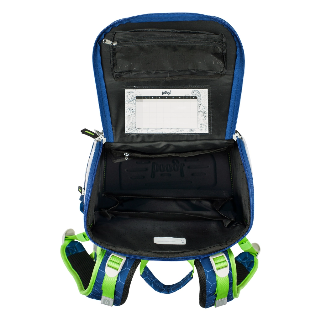 Dizajn aktovke je ugodan oku i funkcionalan. Unutarnji organizator i poseban termo-džep za užinu pomažu održavati stvari urednima, dok izmjenjive značke omogućuju djeci mijenjati izgled aktovke prema vlastitim željama.